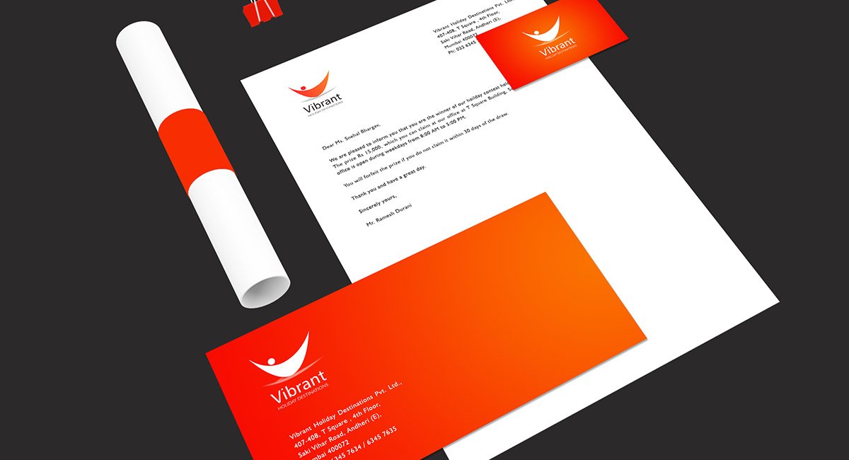 It helps when your client is a young fellow having an open mind and passion for his work. I was fortunate to work for vibrant holidays to create their identity. The logo is a reflection of the state of the person on a holiday. The swoosh also creates a shape V – which makes it unique and beautiful.